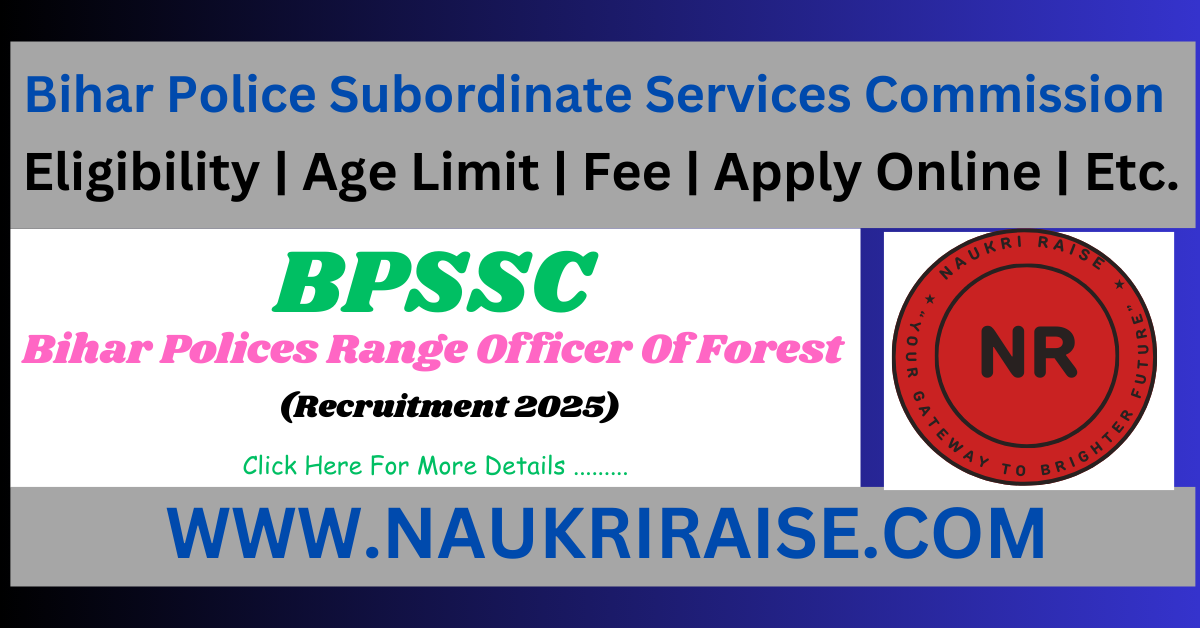 Brief Information : Bihar Police Subordinate Services Commission (BPSSC) has invites Online Application for Bihar Police Range Officer of Forest 2025. Those Candidates who are Interested BPSSC Range Officer Of Forest Vacancy can Read the Notification carefully and Apply Online From 01/05/2025 to 01/06/2025.