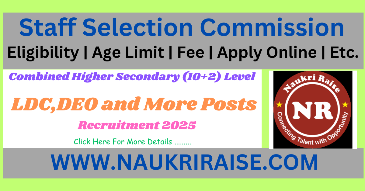 Name Of the Post : Staff Selection Commission 10+2 CHSL online Form 2025